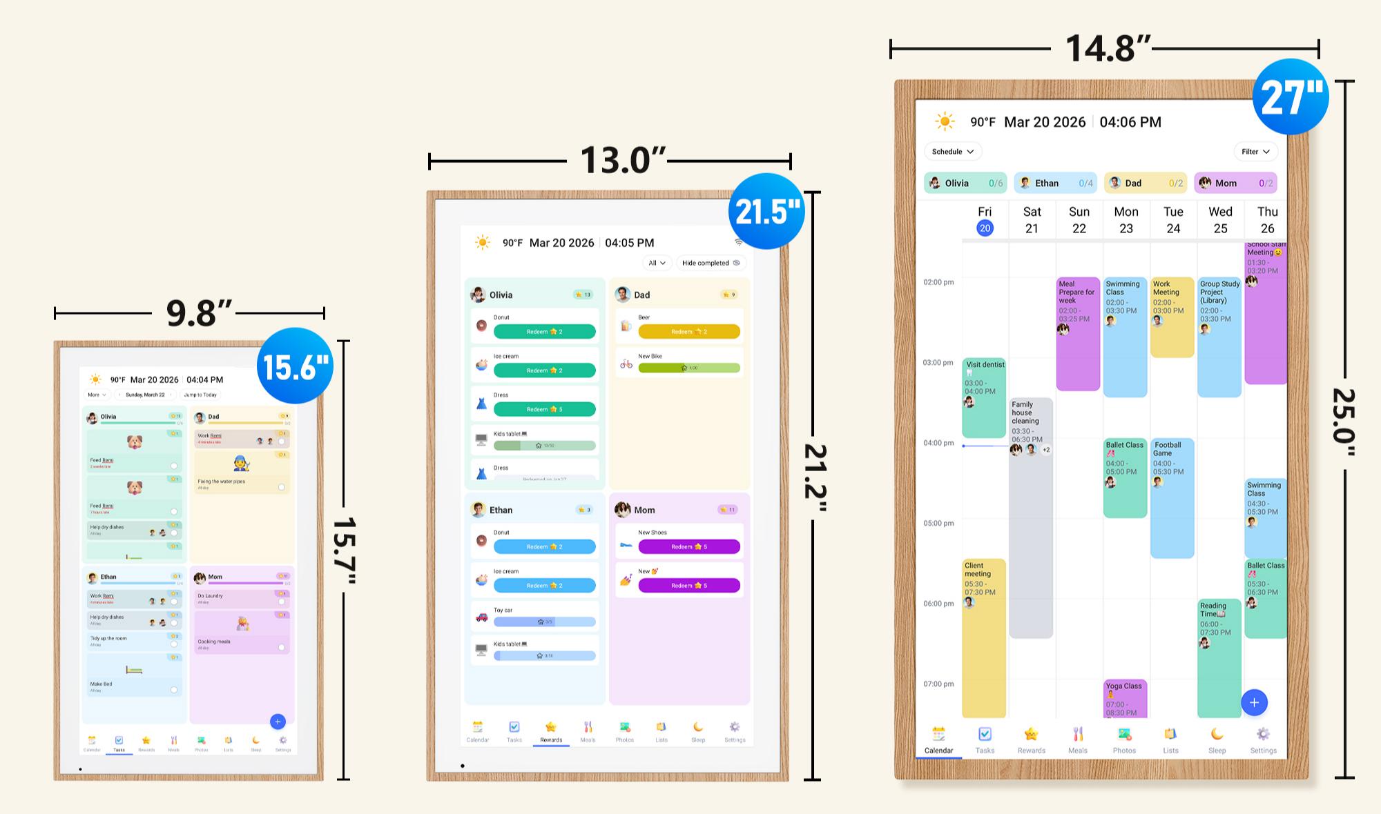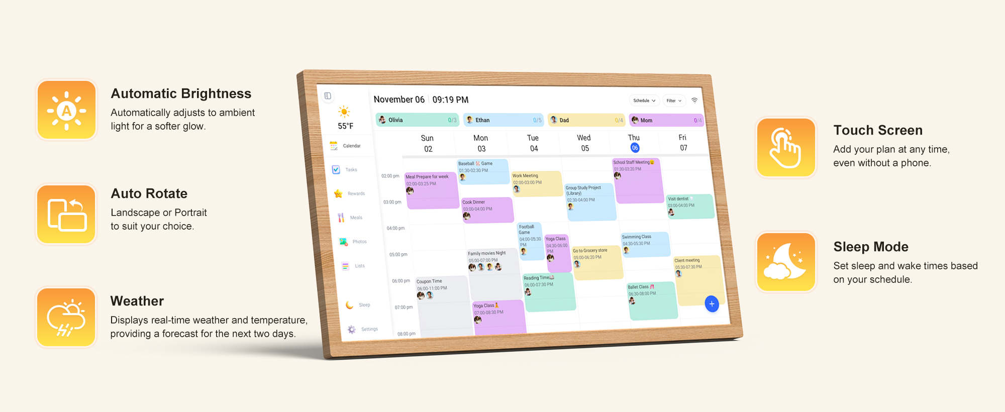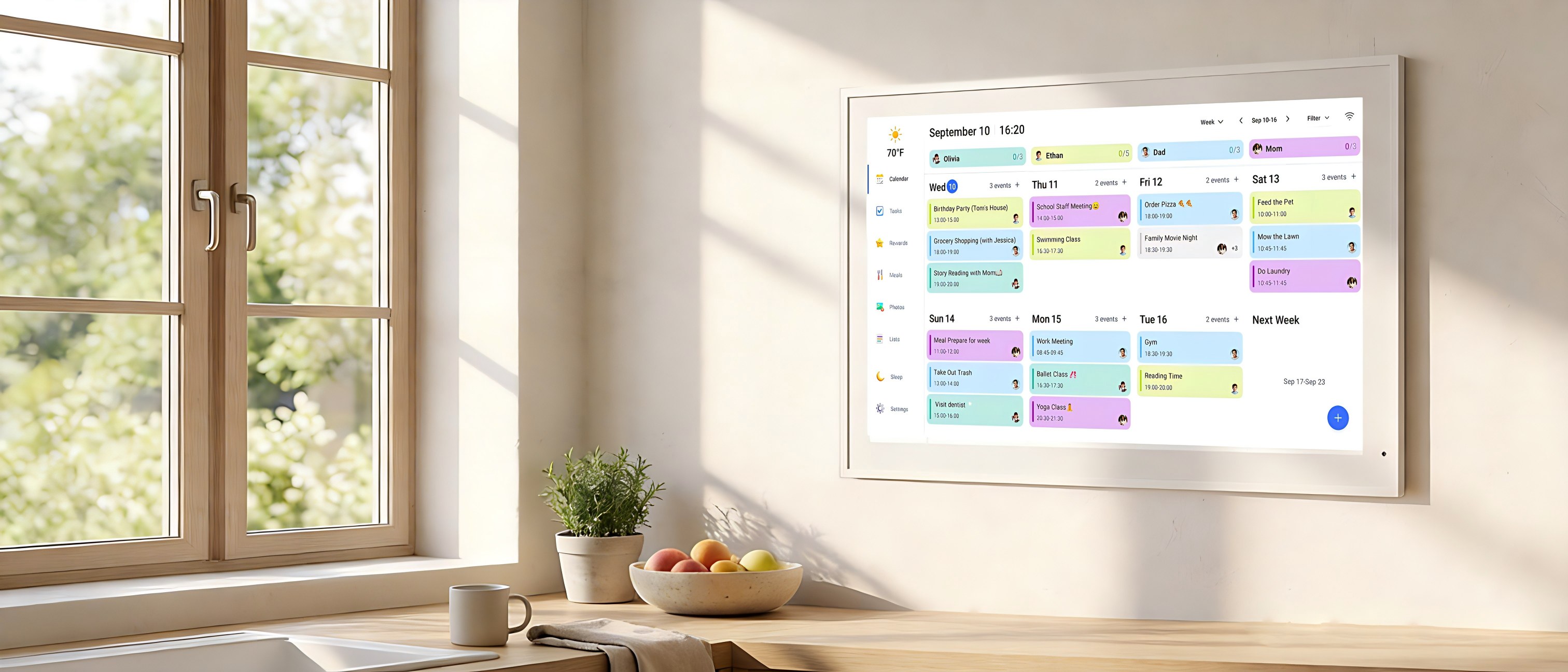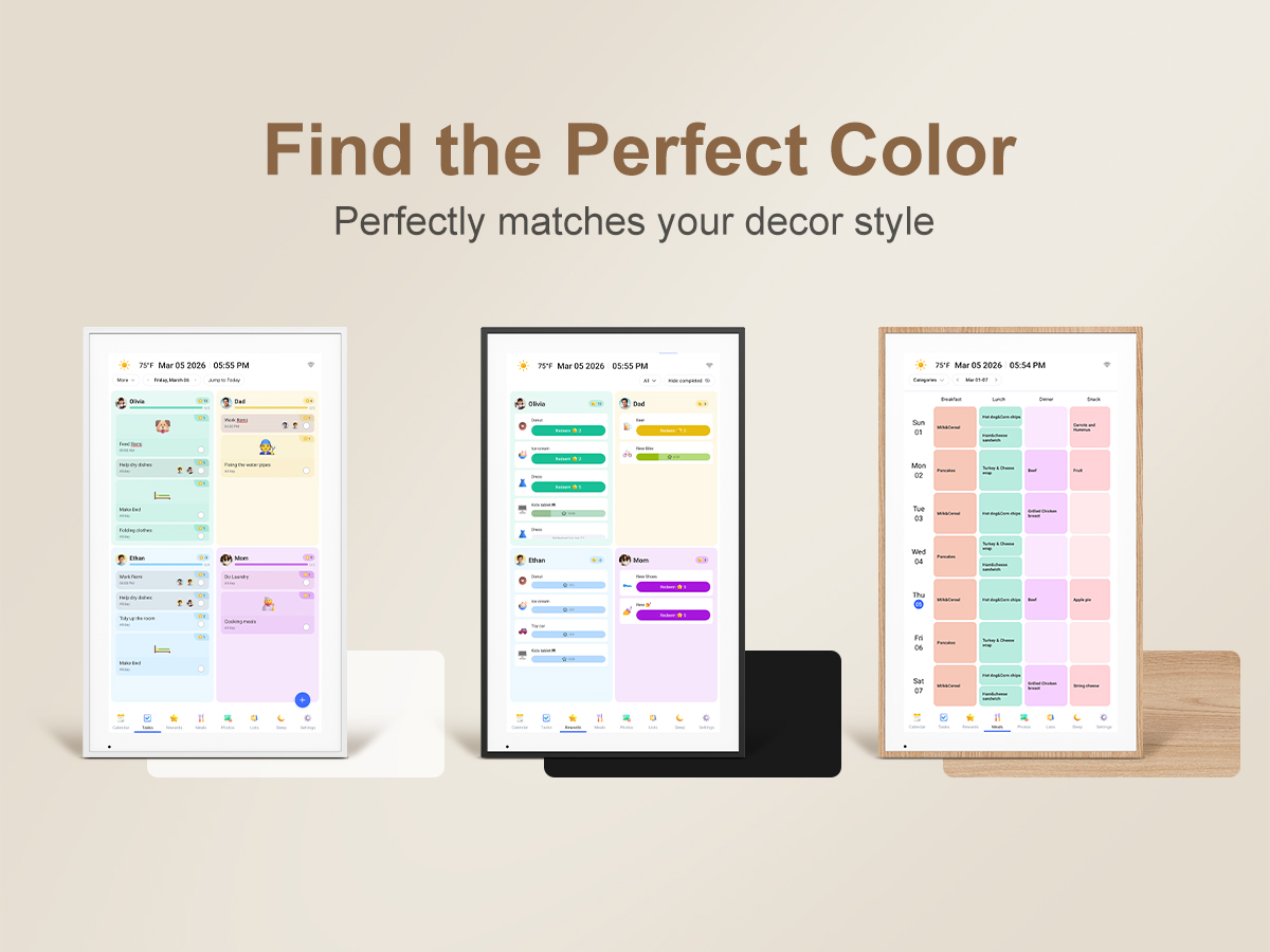 This digital calendar boasts a simple and elegant design, making it a stylish addition to any living room. It’s incredibly practical; the large, clear screen displays the date, time, and chores at a glance.